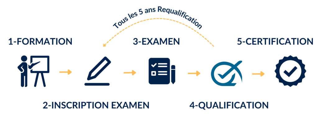 Les niveaux 3 peuvent être requalifiés soit par le système de « crédit de point », soit en repassant l’examen spécifique et pratique équivalent à celui de la qualification initiale.